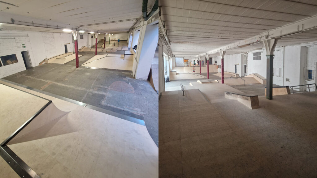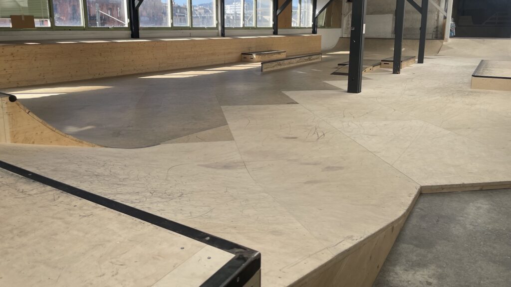 Le half-pipe a été remis à neuf au printemps 2025 et le réaménagement complet de la halle 2 avec la nouvelle jumpline et la nouvelle minirampe incroyaaaaable a été achevé fin août 2025.